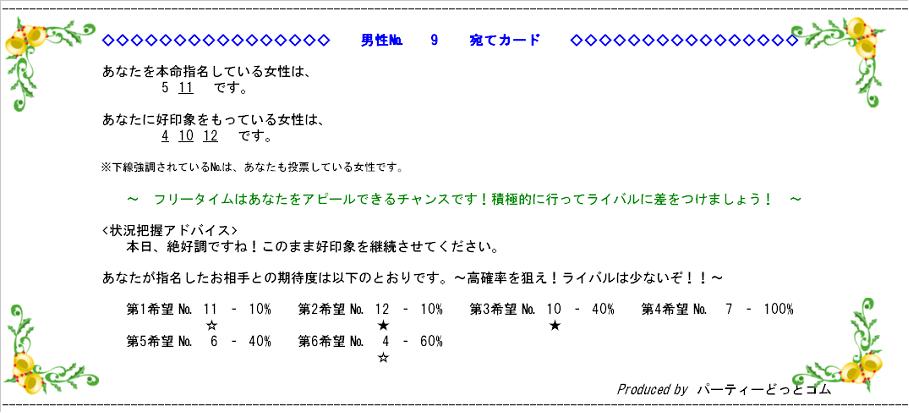 まず一段目・・・「あなたを本命指名している○○は、●番、●番、●番です。」・・・ここにある番号の方は、今日のパーティーであなたのことが一番気に入ってますよ、ということなんです!